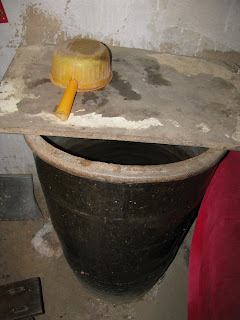 His home was fascinating. He drags water up the side of the mountain from a village well and stores it in this barrel. I can't imagine what a pain that must be.