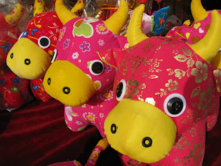 Speaking of finances, 2009 is the year of the OX. You see the animal everywhere. There are decorations on doorways, stuffed animals being carried around and even ice sculptures.