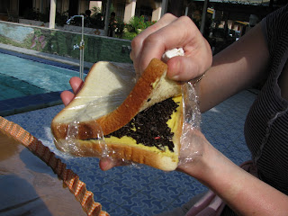 Speaking of future... before we set off on our hike, Anais and I had breakfast at the plantation. Our choices were a rice dish or a sandwich. I opted for a sandwich although I almost wished I didn't.