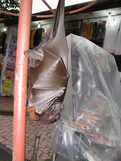 We also had to watch out for giant bats. Yup- this buddy was 2 feet long. He was placed outside a shop to attracted visitors. Their ploy worked. You could even touch it (which I did) but he was a bit cranky and didn't like being woken up- understandably.