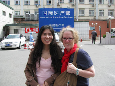 As of the 2008 Beijing Olympics, it has a section specifically for foreigners. I had to go in Wednesday to check in and stay overnight before the surgery on Thursday. Accompanying me were these two lovely ladies- Mama Greene and Angella. Mama Greene was supposed to fly home a few days ago, but changed her flight to be able to be with me. She earns a rock star award for this one! Angella, is a friend's girlfriend. Her English is amazing and so is her kindness. She was essential to eliminating a lot of the confusion.